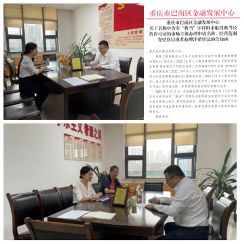 关于重庆市名称中含有“典当”字样但未取得典当经营许可证的市场主体名单的公告
